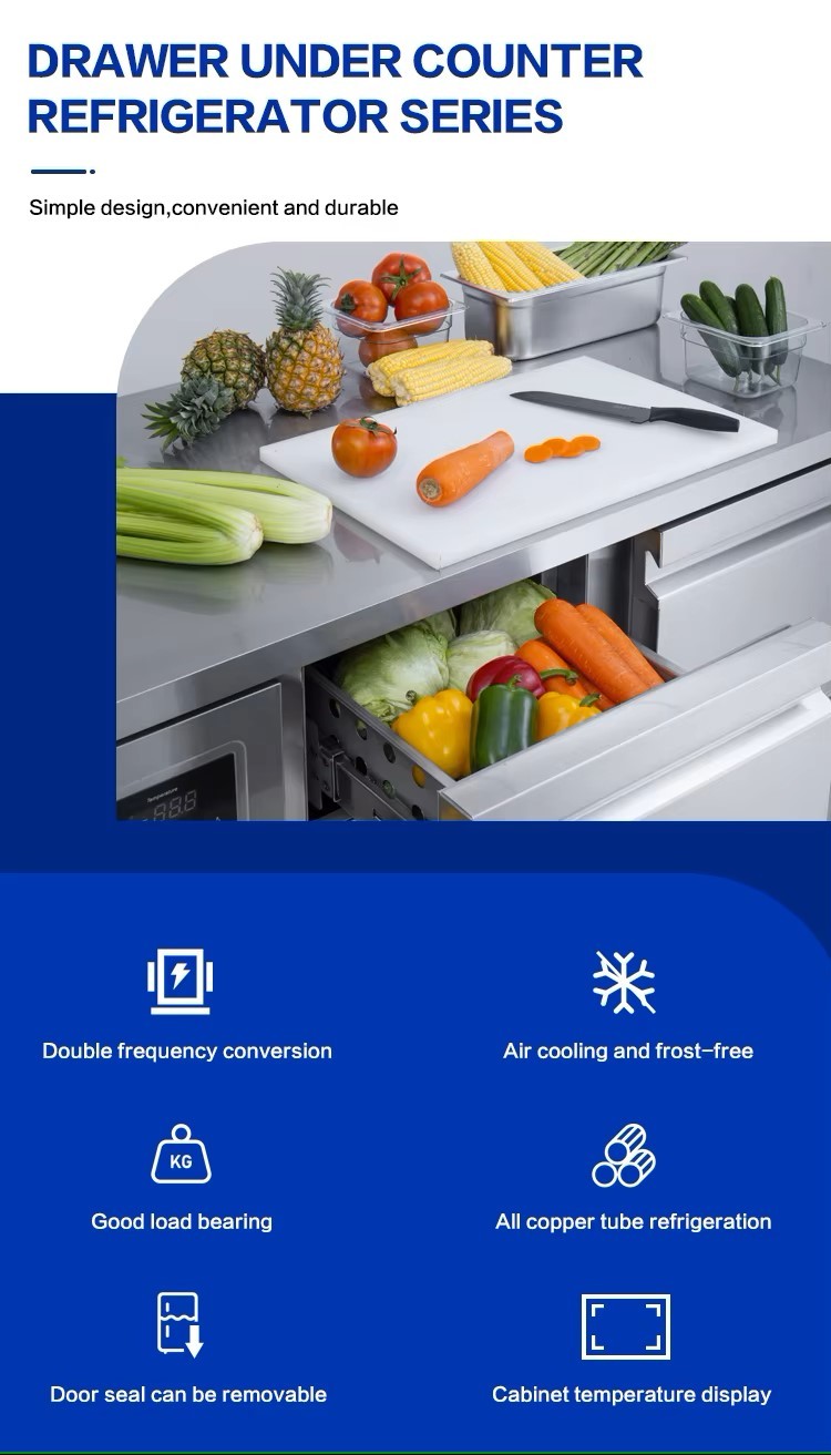 Commercial Stainless Steel Drawer Refrigerator With 4 Drawers Single-Temperature and Imported Slideway Images |